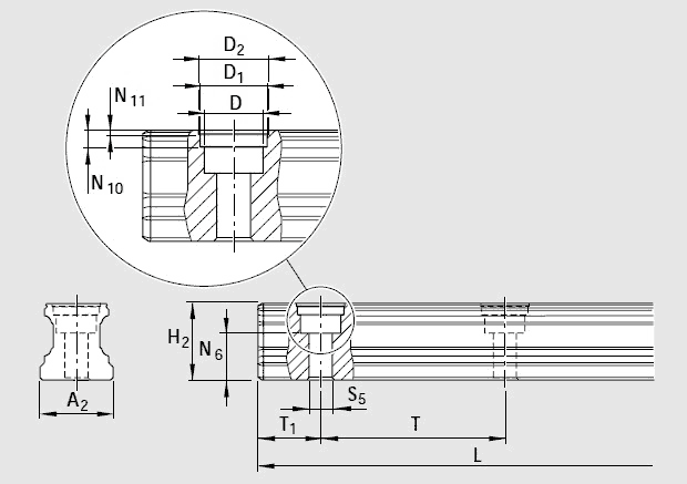 2)對于規格20-45,精度N,H和P的滾珠導軌,單段供貨長度